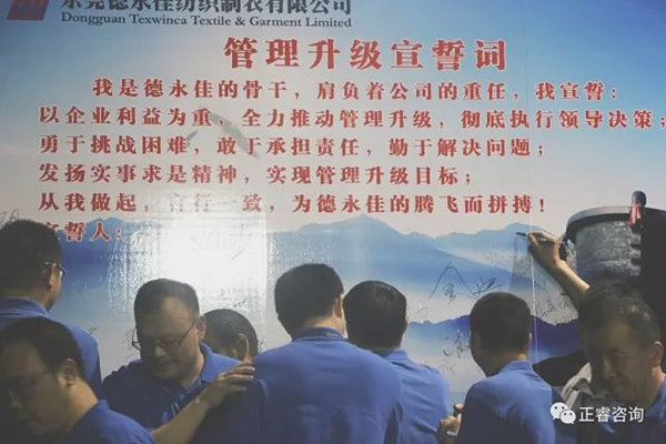 德永佳公司各部门负责人在誓词前签名,管理升级正式拉开帷幕!